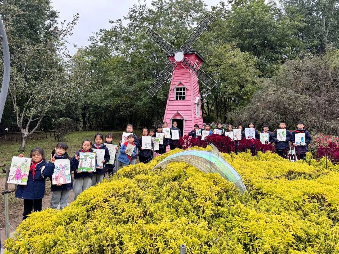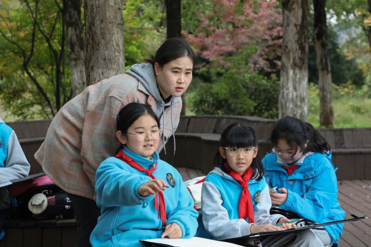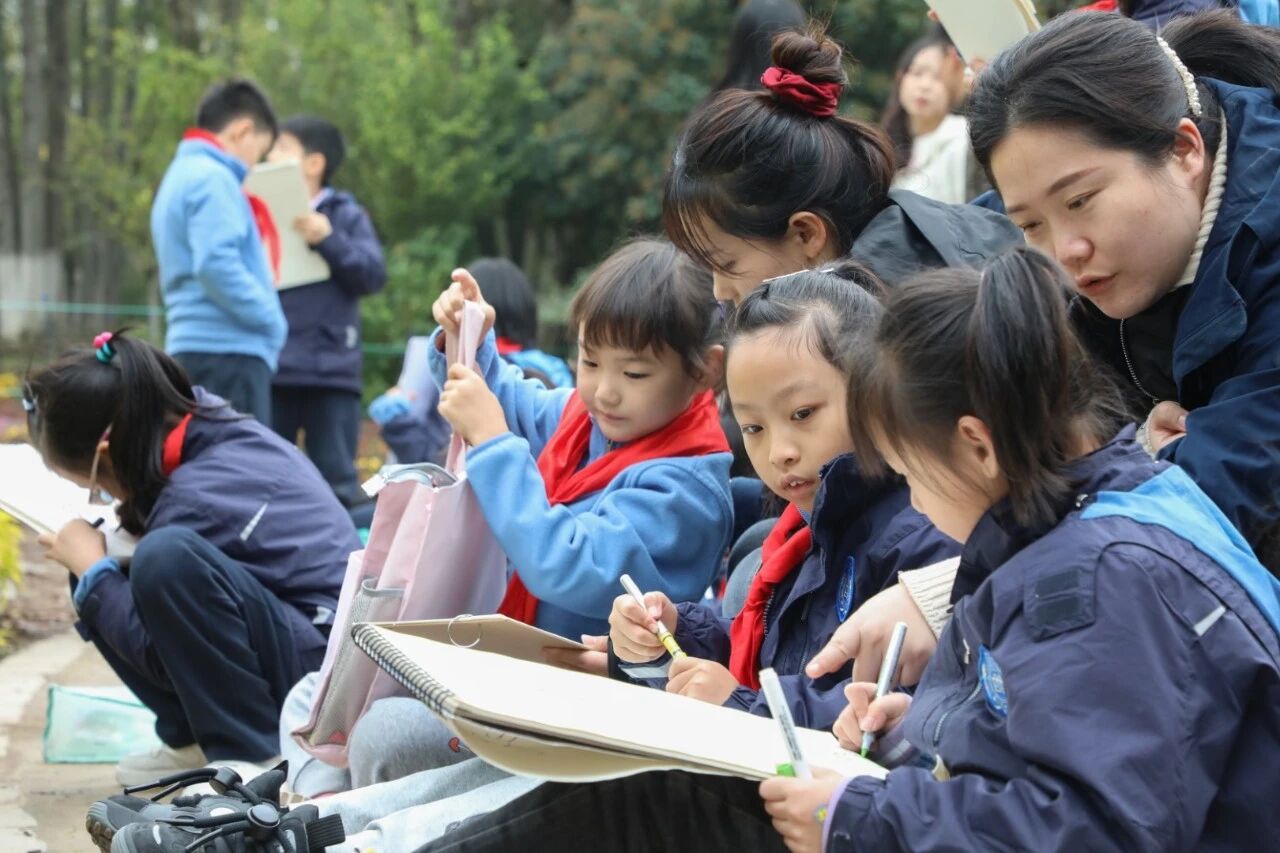 为深入落实国家美育工作部署,践行《关于全面加强和改进新时代学校美育工作的意见》精神,2025年10月21日,西安美术学院造型艺术部与曲江南湖教育集团以“秋日相约,在植物园里遇到秋”为主题,携手开展深度院校合作,组织实施户外美育实践活动。西安美术学院张尧老师带领李海涛、董旭、陆圣宇、蔺静锐四位专业学生全程参与指导,将高等艺术教育资源融入基础教育现场,推动美育从课堂走向自然,构建“高校+基础教育”协同育人新范式。