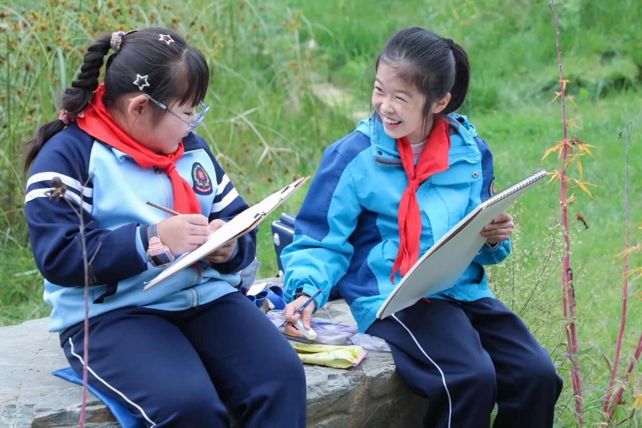 在西安美院师生与曲江南湖教育集团美术教师的共同引导下,南小学生们以画笔为媒,感知秋意,捕捉秋色,在专业浸润中提升艺术表现力
